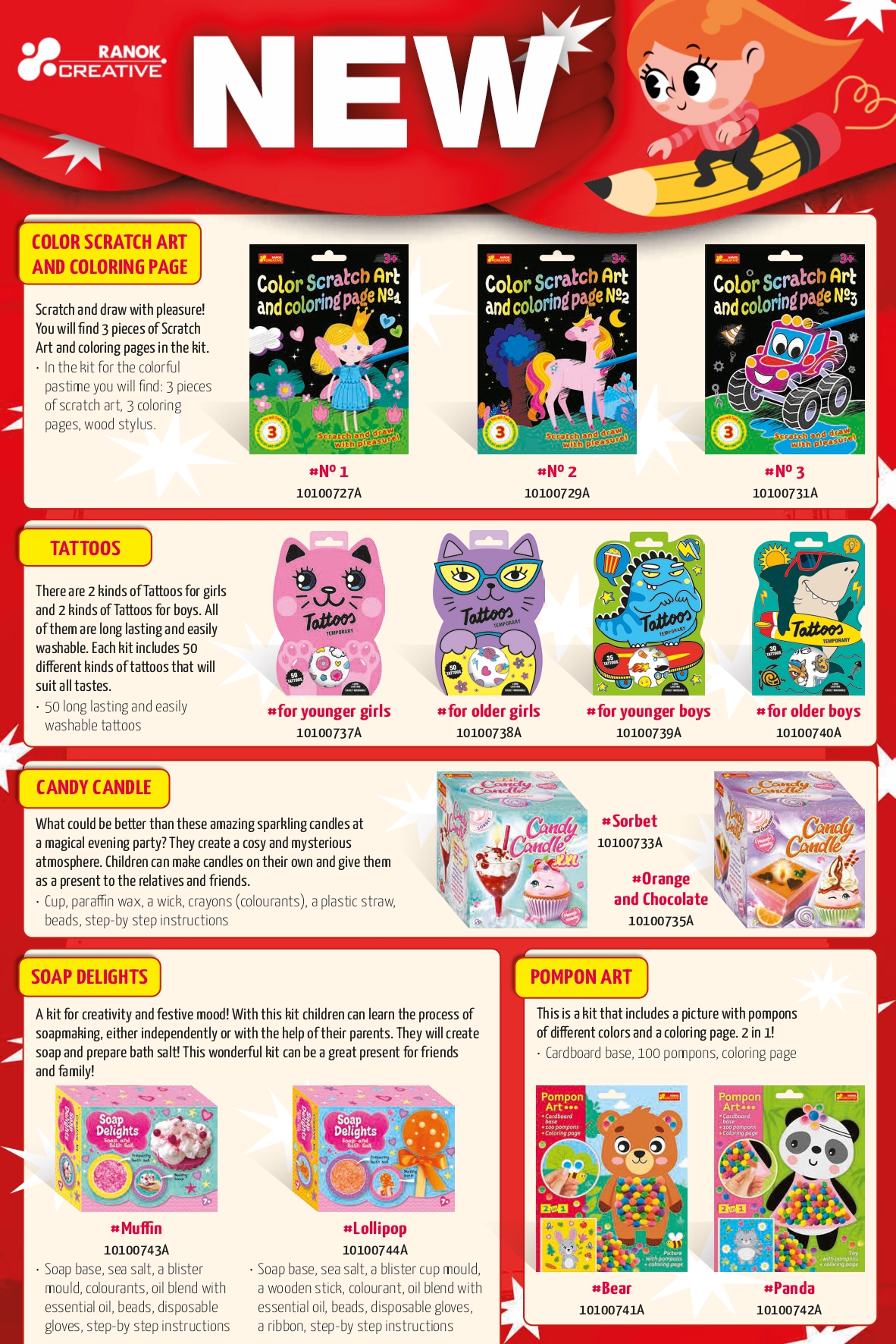 Discover fun, colorful, and inspiring products for kids, from scratch art and tattoos to creative kits and more